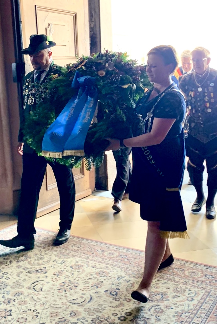 Vor der Investiturmesse wurde in der Mondsee-Basilika ein Kranz niedergelegt, getragen von der Europakönigin und dem polnischen Verbandskönig.